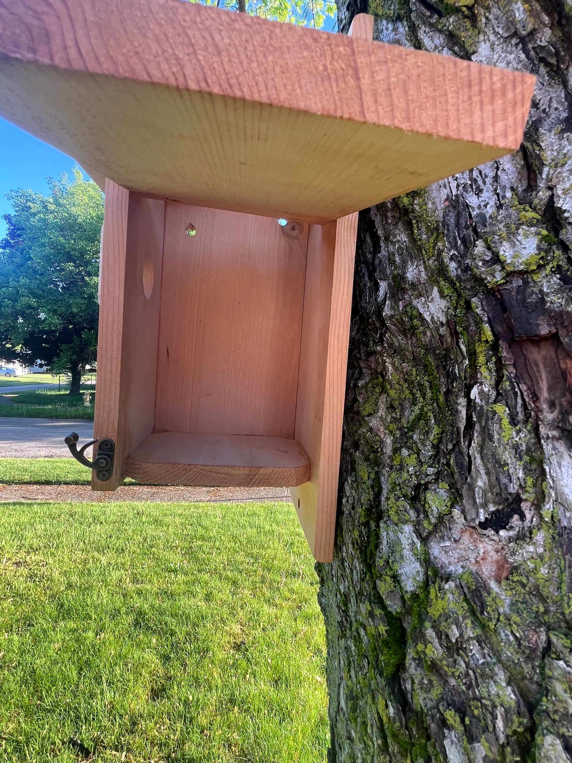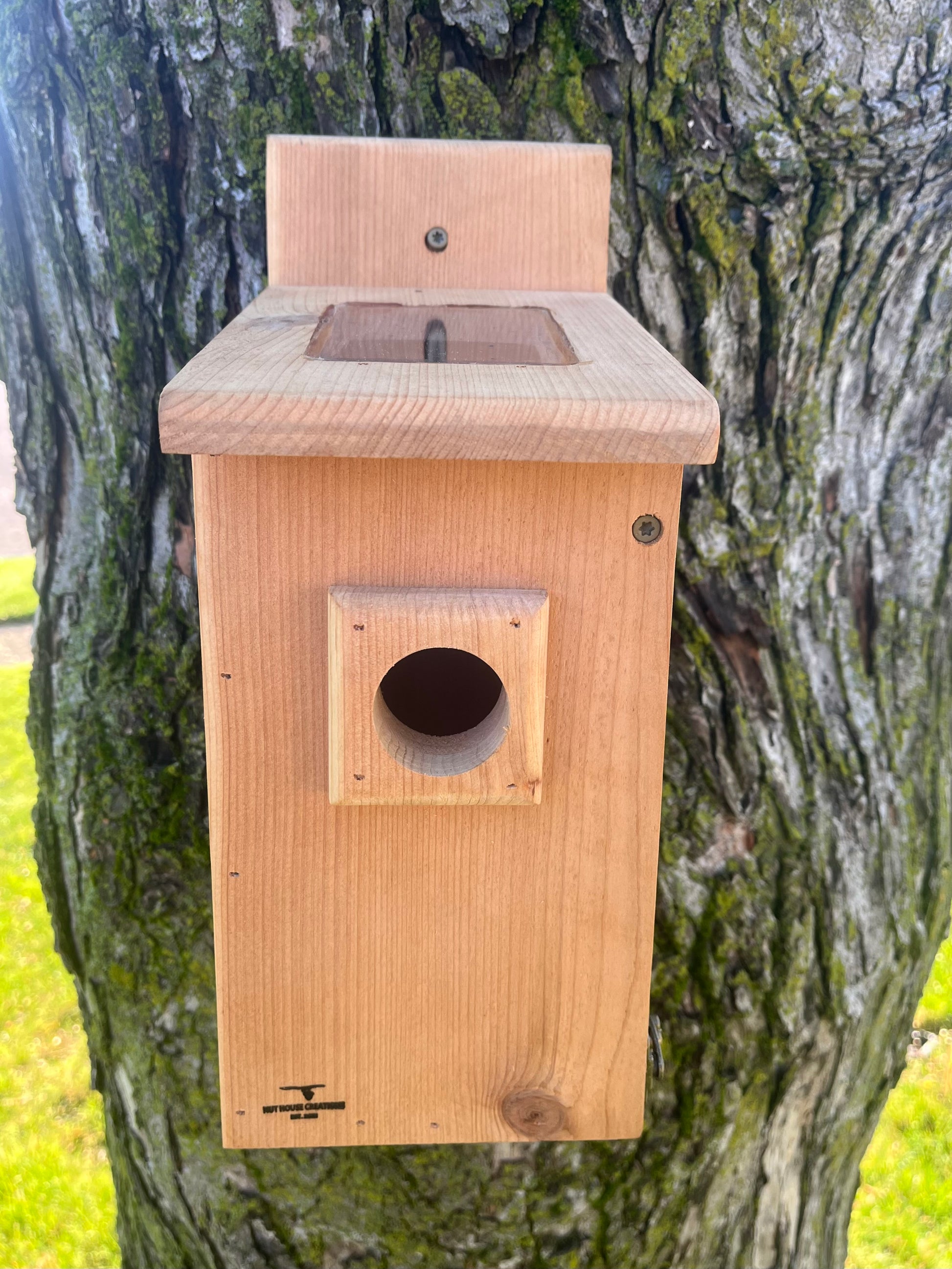 These nesting boxes are your basic bluebird nesting box, but with an upgrade to help deter unwanted nuisance House Sparrows.